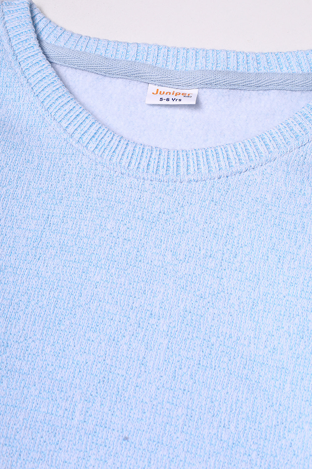 Stay cozy and stylish with this Light Blue Knit Sweatshirt. Its soft knit fabric provides gentle warmth, perfect for cool days. The light blue shade adds a fresh, calming touch to any outfit, making it easy to pair with your favorite jeans or leggings. Designed for comfort and casual wear, this sweatshirt is an ideal choice for everyday layering.