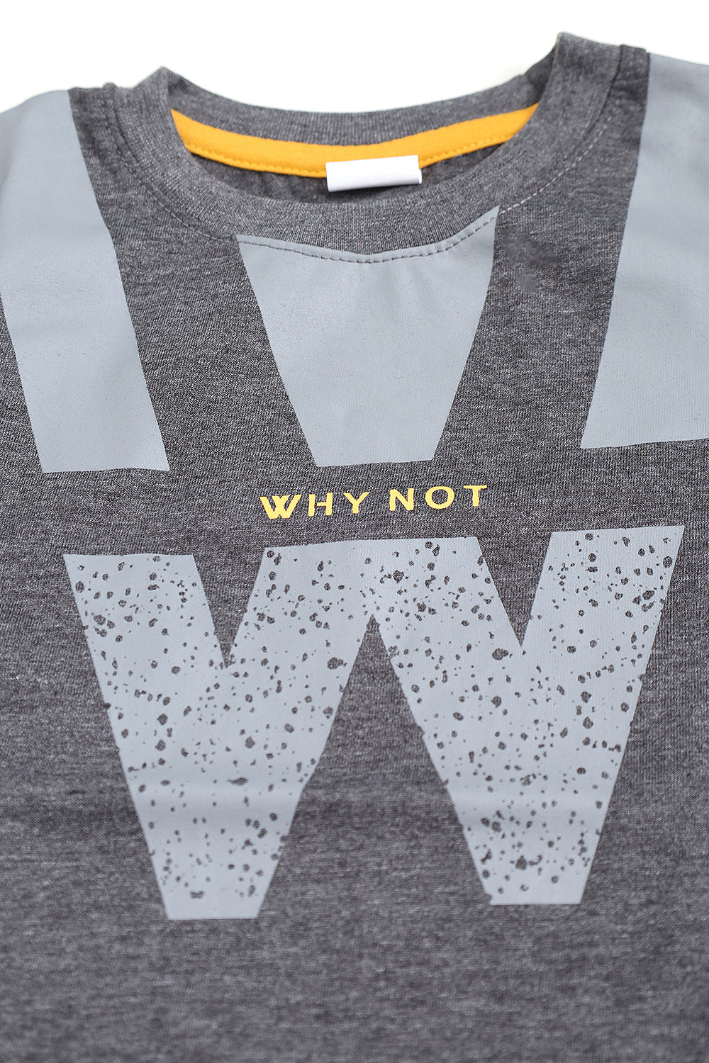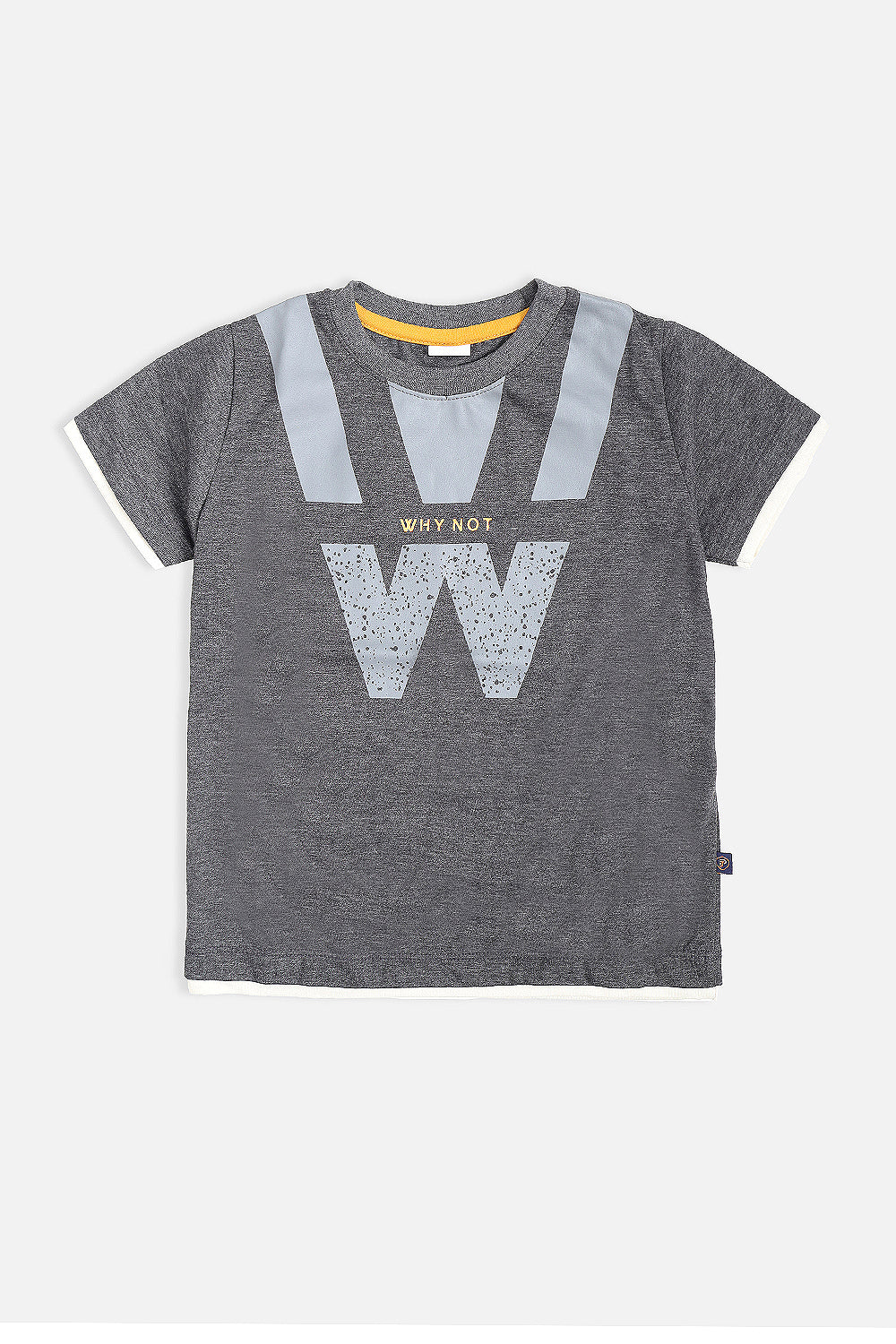 This boy's t-shirt features a playful and versatile "why not" print, perfect for adding a touch of fun to any outfit. Made with comfortable short sleeves, it's an essential piece for any young boy's wardrobe. Why not add it to your cart now?