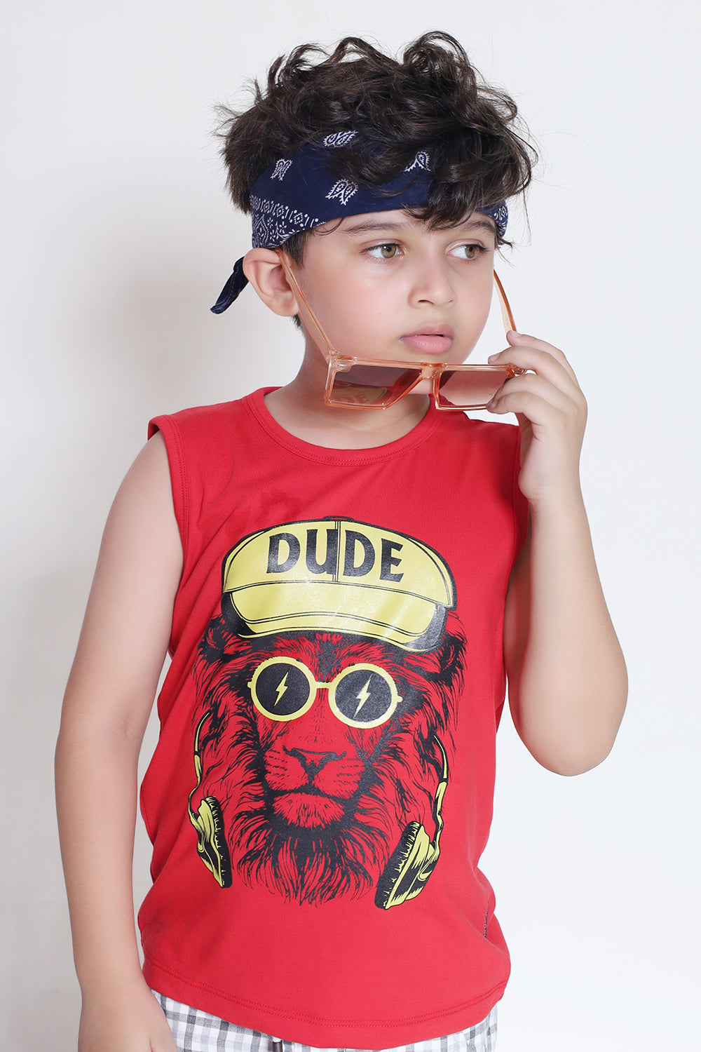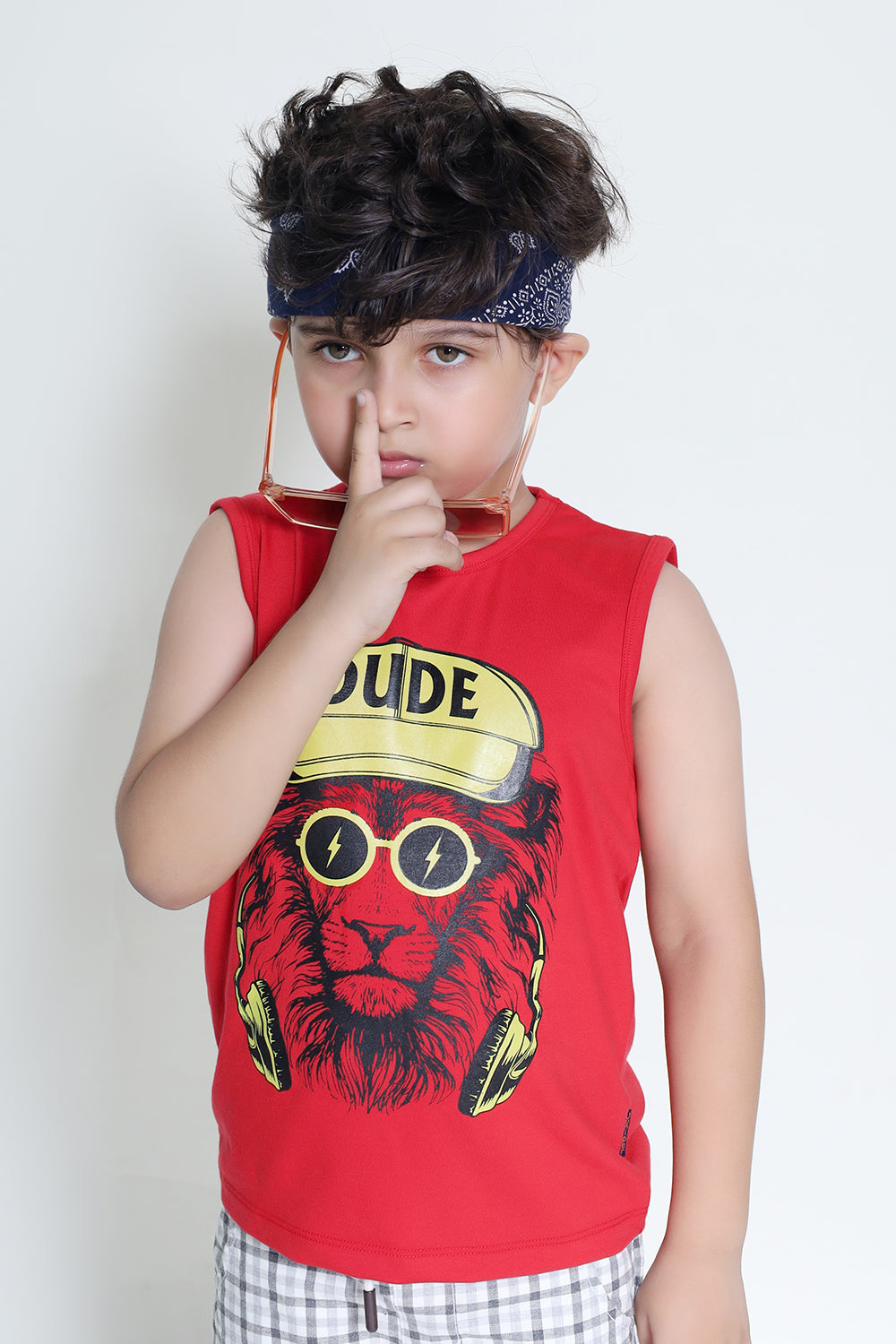 Meet the Red - Lion Dude Sando, a vibrant and stylish addition to your wardrobe. Featuring a striking red color and a bold lion graphic, this sando will make you stand out in any crowd. Made with high-quality materials, it offers maximum comfort and durability. Be cool and confident in your Lion Dude Sando.
