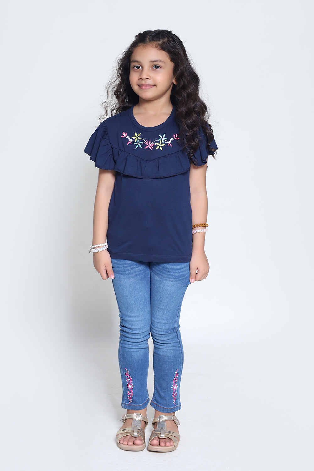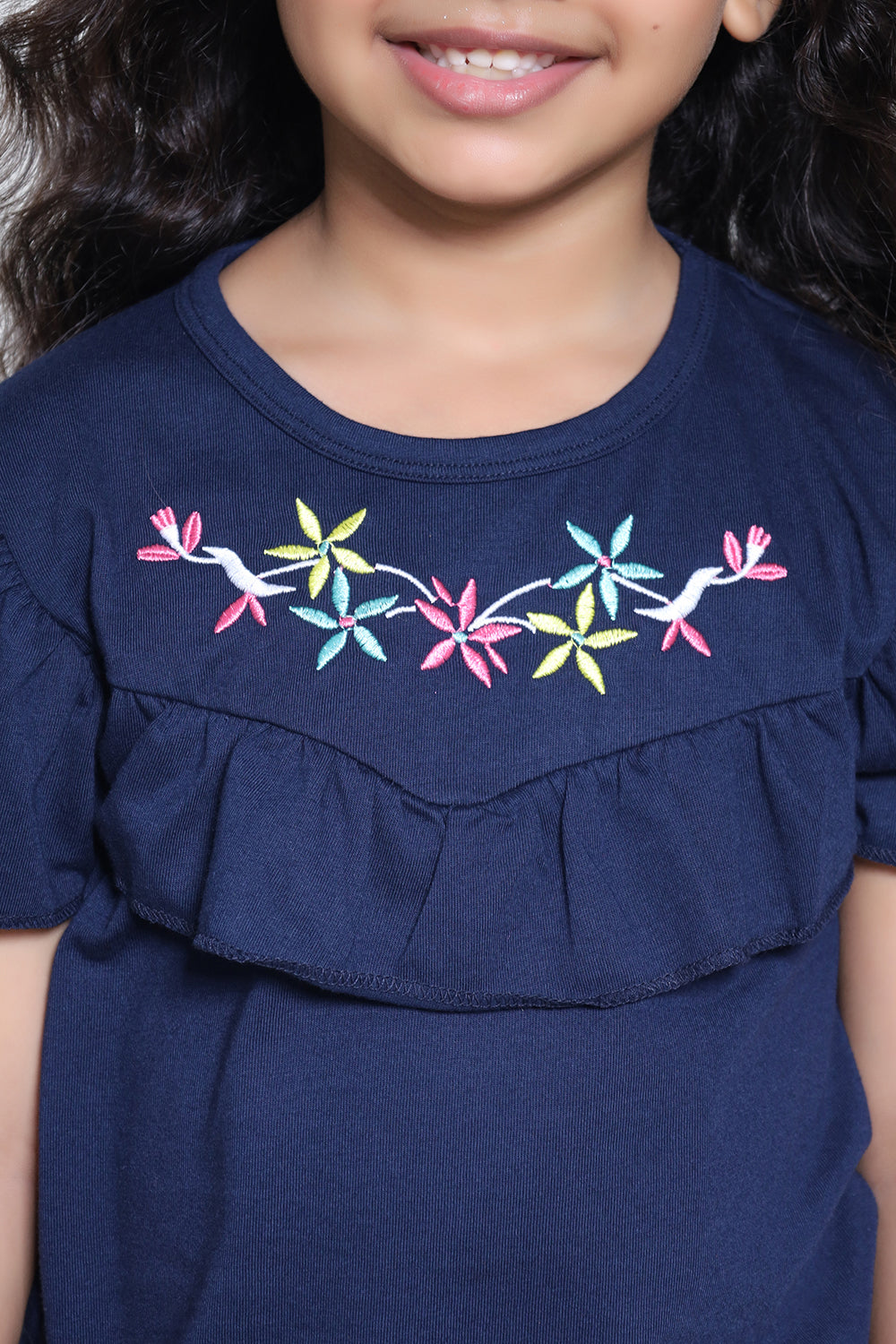 Stay cool and stylish with our Summer - Girl's Top. Featuring delicate embroidery, this top is perfect for any summer day. Keep your little one comfortable and fashionable all season long.