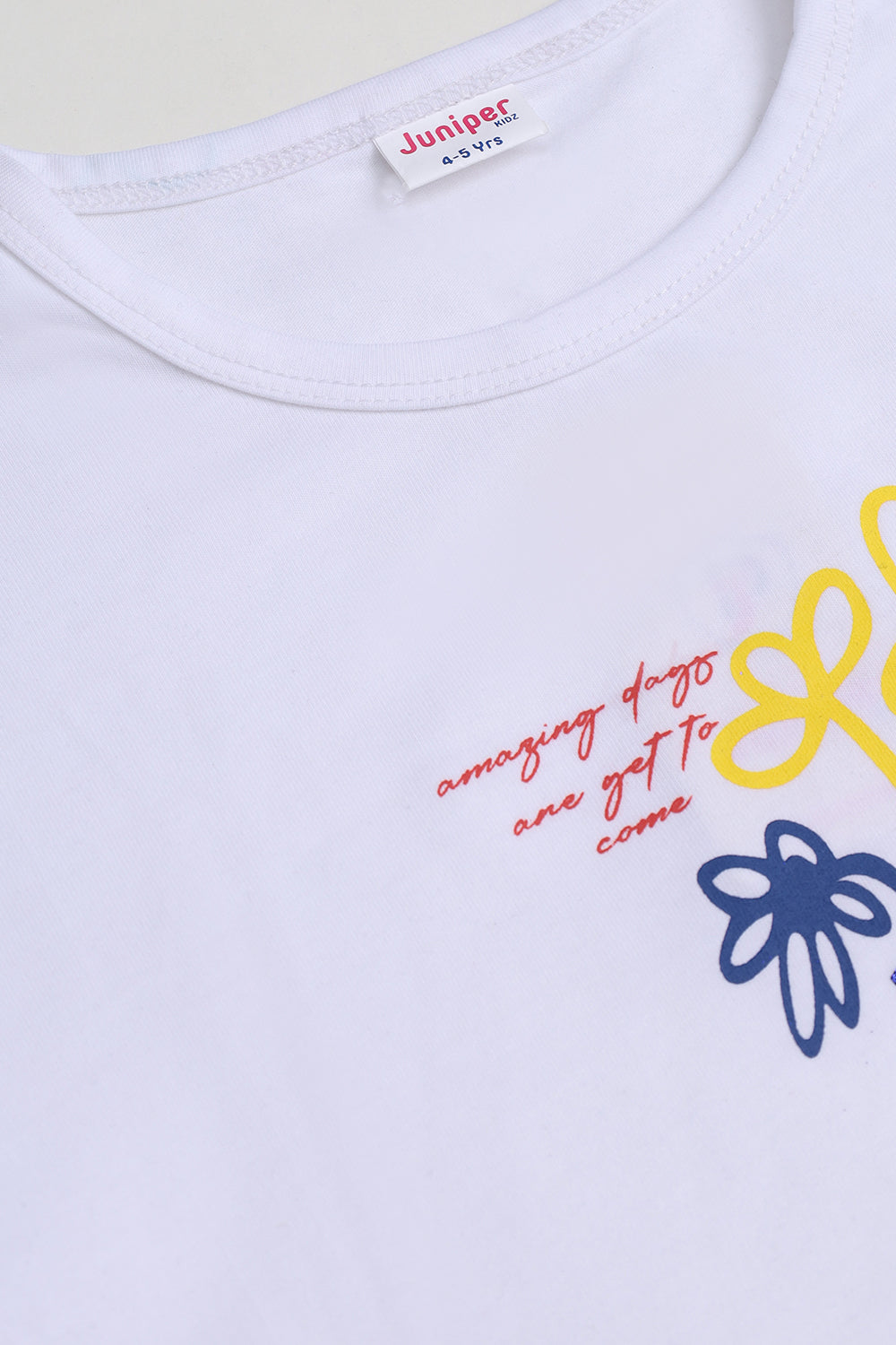 Experience ultimate comfort and happiness with our GIRL'S T-SHIRT! Made from soft material, this tee will keep your little one feeling happy all day long. The fun and unique print adds a cute touch to any outfit. Give your child the best with our HAPPY & SOFT GILRS TEE PRINTED.